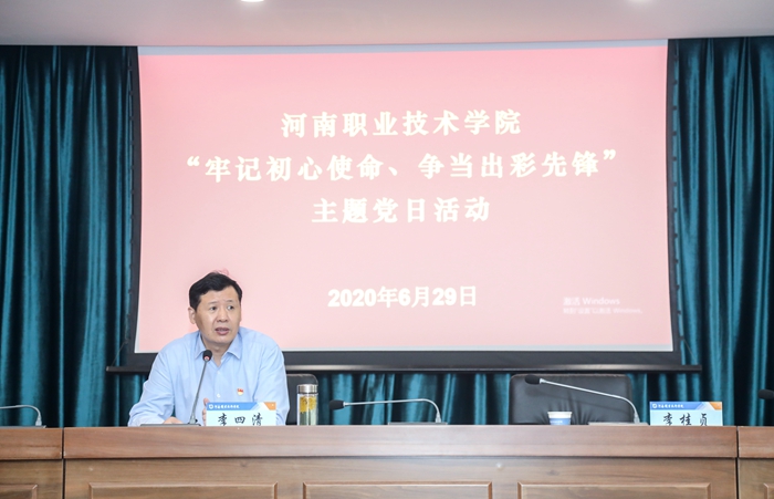 李四清在党课中指出,作为高校,我们的初心和使命就是深入学习贯彻习近平新时代中国特色社会主义思想,全面落实立德树人根本任务,培养德智体美劳全面发展的社会主义建设者和接班人。李四清强调,一要筑牢信仰之基。作为一名高校领导干部有了坚定的理想信念,站位就高了,心胸就开阔了,就能坚持正确政治方向,做到“风雨不动安如山”,就会深刻领会习近平新时代中国特色社会主义思想贯穿其中的马克思主义思想方法和工作方法,不断夯实增强“四个意识”、坚定“四个自信”、做到“两个维护”的思想根基。二要补足精神之钙。在理论学习上,要舍得花精力,全面系统学,及时跟进学,深入思考学,联系实际学,要切实把学习成效转化为做好本职工作、推动学院事业发展的生动实践,把初心使命变成党员干部锐意进取、开拓创新的精气神和埋头苦干、真抓实干的自觉行动。三要扛牢肩上之责。能否敢于负责、勇于担当,最能看出一个干部的党性和作风。要发挥“关键少数”的关键作用,既要有宽肩膀、又要有铁肩膀,既要有责任担当之勇、又要有破解难题之智,用知重负重、攻坚克难的实际行动诠释对党的忠诚、对人民的赤诚。广大党员要把投身疫情防控和学校改革发展一线作为践行初心使命、体现责任担当的试金石和磨刀石,在承担完成学校各项工作中经受考验。李四清要求,我们要把思想政治工作和党的建设结合起来,加强学校思想政治工作队伍建设,把思想政治工作体现到学院工作各方面各环节,贯穿到教育教学全过程,贯穿“双高计划”建设全过程,进一步推动学校思想政治工作再上新台阶。