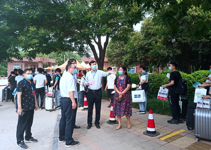 校领导一行实地察看了学生返校过程中的重点环节、风险点和防控点等情况,详细了解同学们假期学习、生活及返校过程;走访二级学院报到点,仔细查看毕业生身份核验、体温监测与报到注册工作,了解整套流程的实施情况,并对一线工作人员进行了亲切慰问。