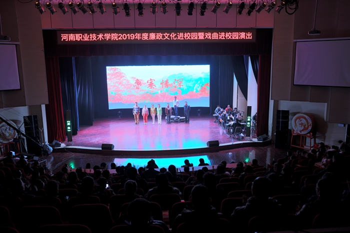 12月23日晚,廉政戏曲进校园活动走进我校,由省豫剧院青年团倾情打造的优秀扶贫题材豫剧《鲁寨情深》在学校音乐厅进行了展演。校党委书记李四清、院长李桂贞和其他校领导班子成员及师生代表共500余人一同观看了演出,共同感受传统戏曲文化魅力。