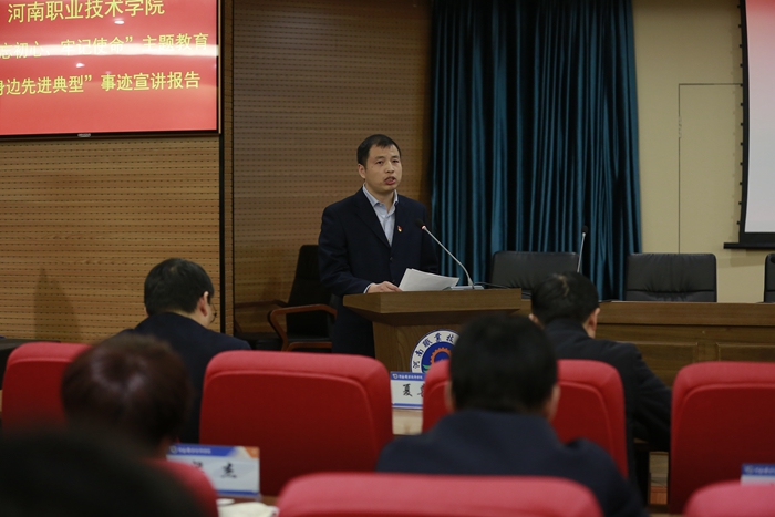会上,来自机电工程学院王东辉、旅游管理学院的郭丽等8位同志分别围绕优质校建设、“双高计划”建设、技能大赛、学生管理、教育教学、志愿服务和后勤服务等方面,对先进群体和先进个人的事迹进行了宣讲,充分展示了河职人甘于奉献、脚踏实地、务实创新的工匠精神,进一步推进了我校“不忘初心、牢记使命”主题教育的深入开展。