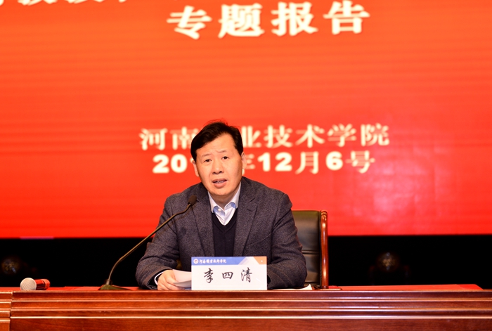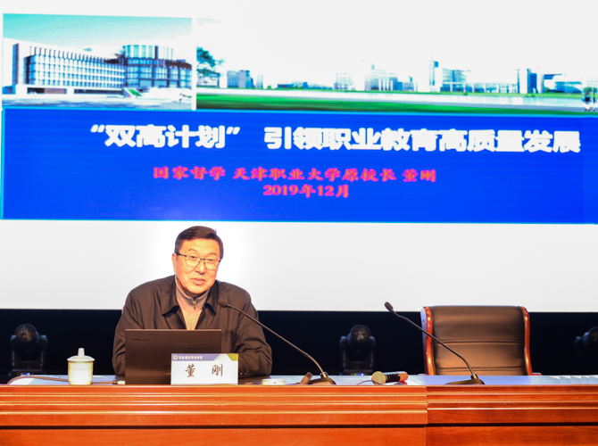 为深入学习贯彻习近平新时代中国特色社会主义思想,落实立德树人根本任务,全面深化教育教学改革,高质量推进“双高计划”建设任务。12月6日上午,我校特邀国家督学、全国高职高专校长联席会主席、天津职业大学原校长董刚教授,来校作了题为《“双高计划”引领职业教育高质量发展》的专题讲座。学校领导、副处级以上干部、各教研室主任、学术技术带头人和教职工代表共400余人听取了讲座。讲座由校党委书记李四清主持。