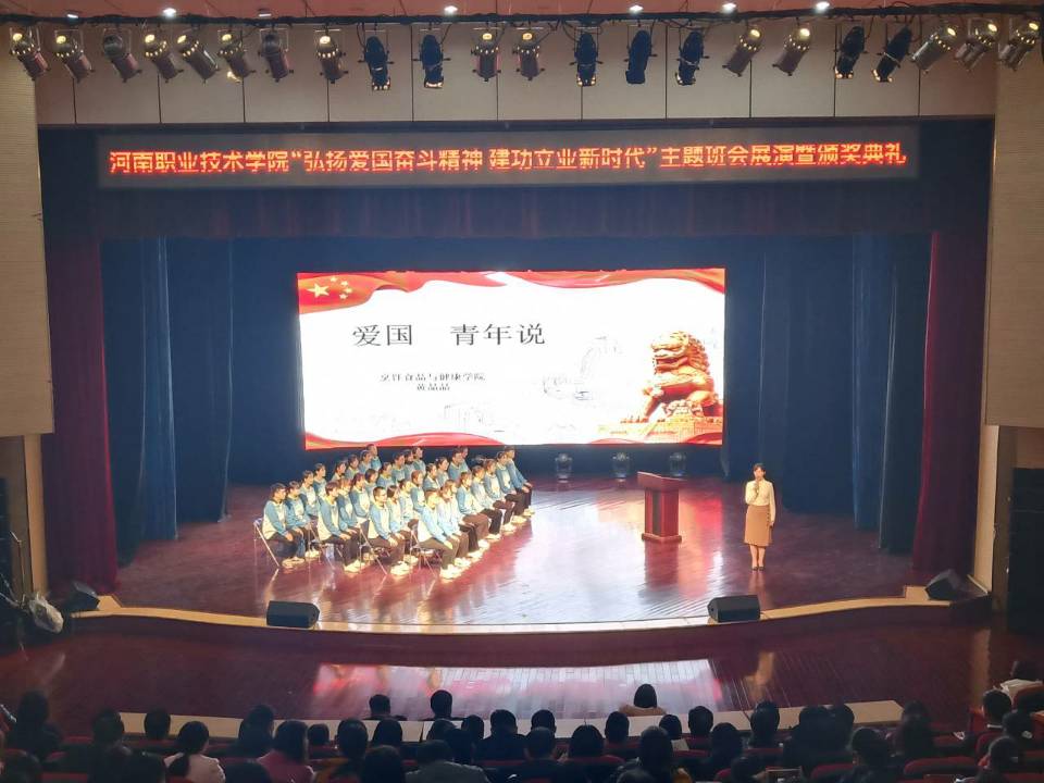 12月5日下午,我校在音乐厅举行“弘扬爱国奋斗精神,建功立业新时代”主题班会展演暨颁奖典礼。校工会主席夏喜利,各二级学院党、团总支的负责同志和全体辅导员及学生代表共600余人参加了活动。