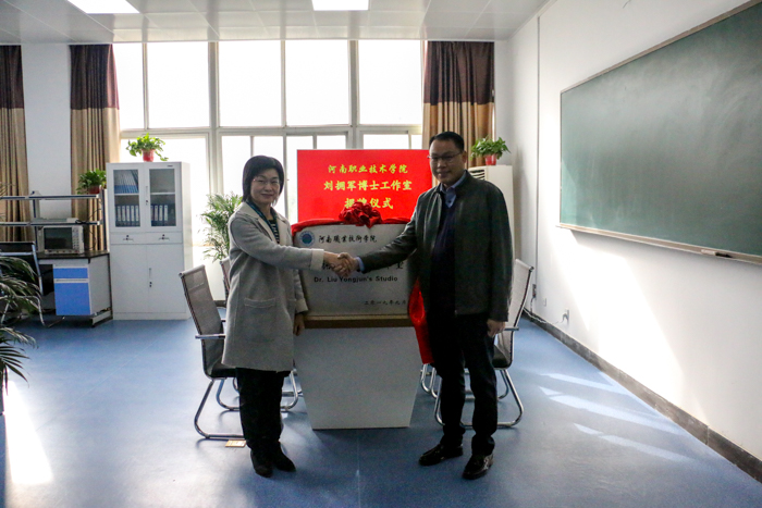 11月20日上午,我校刘拥军博士工作室揭牌仪式在电气工程学院创新实训中心举行。校领导李桂贞、肖珑和田华,人事处有关同志、电气工程学院领导班子及电子信息工程技术教研室、实训中心工作人员参加揭牌仪式。