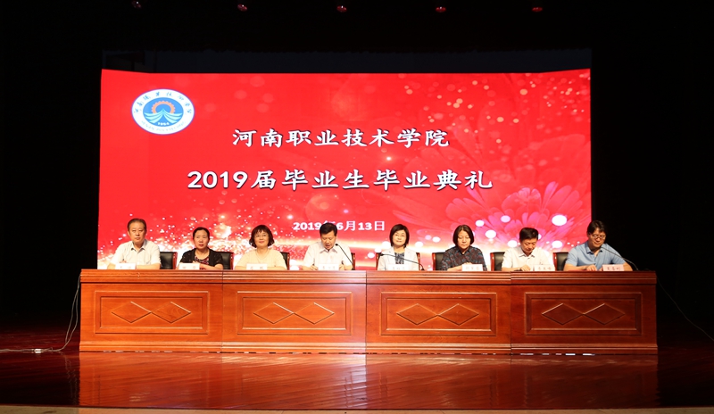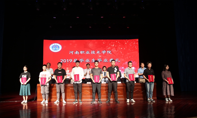 毕业典礼在雄壮的国歌声中正式开始。校工会主席夏喜利同志宣读了2019年河南省优秀应届毕业生表彰文件;校领导为2019届毕业生代表颁发了毕业证书,为2019届河南省优秀毕业生代表颁发了荣誉证书;电气工程学院毕业生黄栩然同学代表2019届毕业生回顾了三年的大学生活,对母校、老师、家长和同学们分别表示了感激之情,表示将承载学院领导、老师们的深情嘱托,做胸怀大志并脚踏实地的人,做德才兼备并勇于创新的人,在祖国的各个行业为河职争光;思想政治理论教学部马金伟作为教师代表为毕业生上了一节精彩的思政课。他从立志、奋斗、实干、乐观、努力等6个方面,用生动的事实和风趣地语言表达了学校全体教师对2019届毕业生的殷切期望和衷心祝福,希望他们谱好自己的青春之歌。