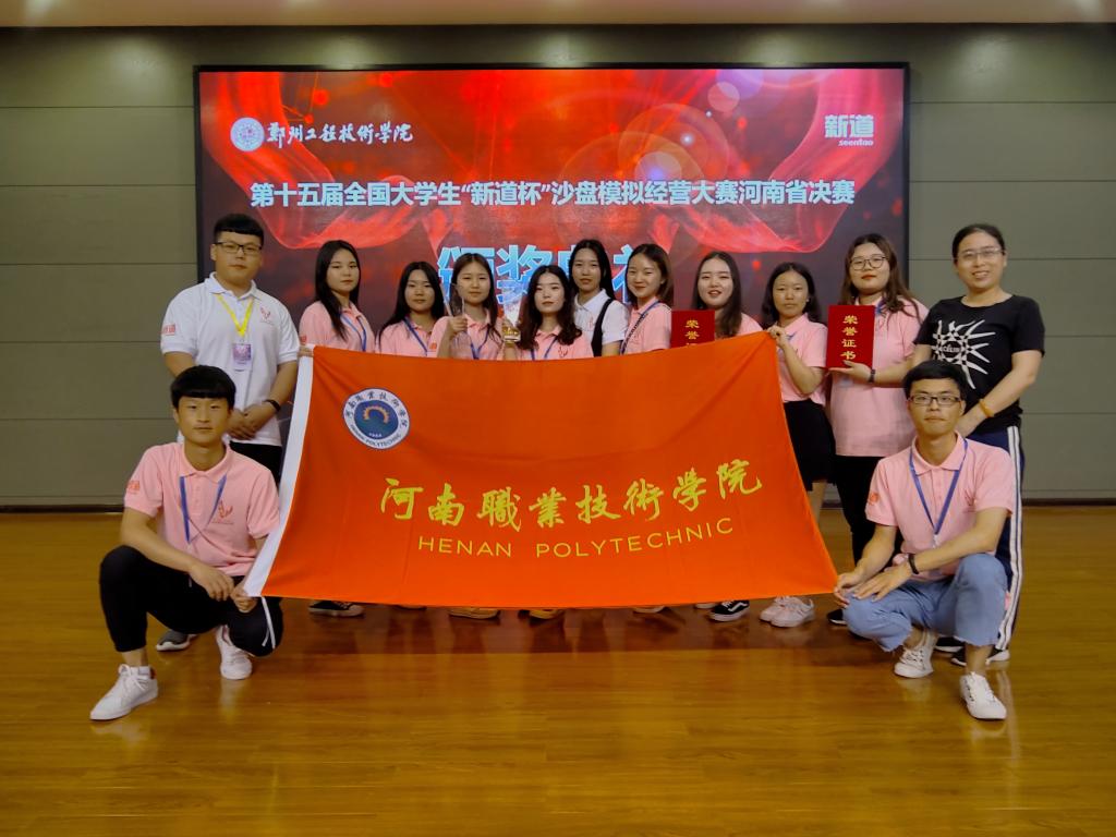 5月25日,第十五届全国大学生“新道杯”沙盘模拟经营大赛河南省总决赛在郑州工程技术学院落下帷幕。大赛共有包括我校在内的58所高校的130支队伍650名选手参赛。我校商学院代表队沉着应战、团结协作,最终荣获该赛事高职组“特等奖”,成功晋级国赛,并将于9月份代表河南参加国赛。