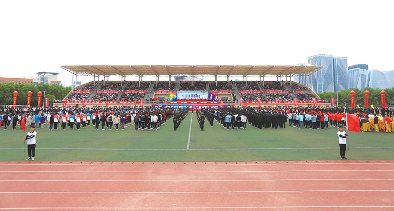 伴随着激昂的运动员进行曲,国旗方队、彩旗方队、各二级学院代表队、裁判员代表和教职工代表队精神饱满,迈着矫健的步伐,喊着嘹亮的口号,依次步入会场,充分展示了我校师生员工良好的精神风貌。