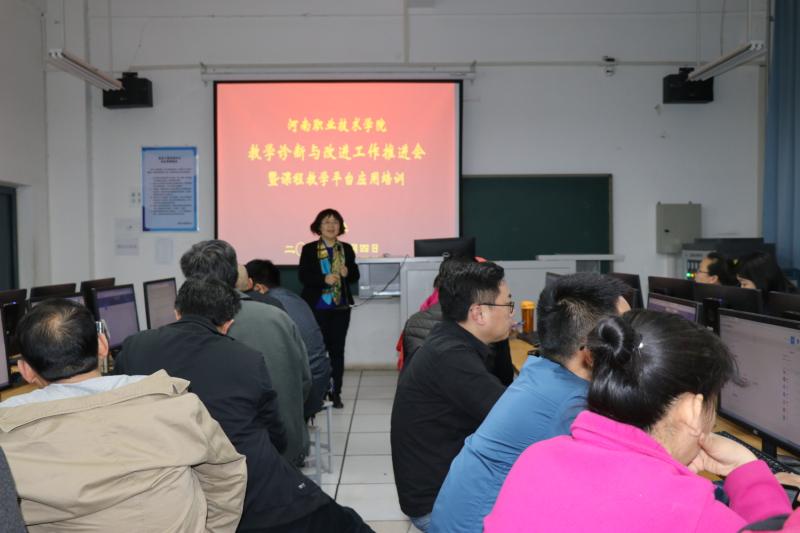 4月4日下午,我校在电教楼207实训室召开了教学诊断与改进工作推进会暨课程教学平台应用培训,副院长肖珑出席会议并对培训作总结讲话。教学单位副院长(副主任)、教研室主任和教务处相关工作人员80余人参加了会议。