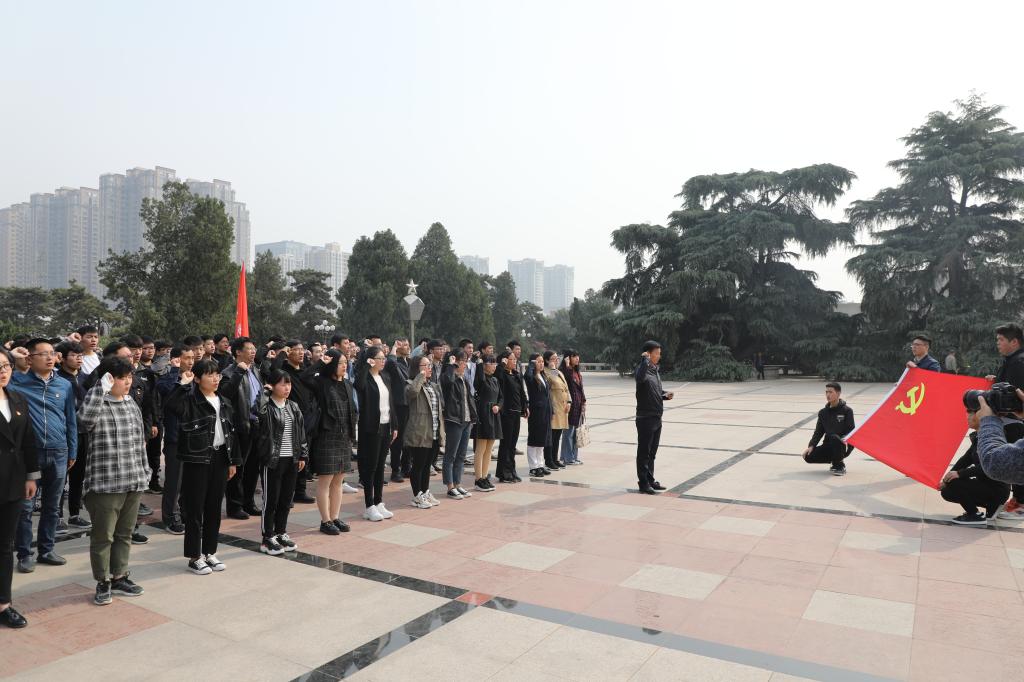 活动伊始,师生们先参观了中原英烈纪念馆,一个个沉甸甸的历史物件仿佛重现着革命时期血雨腥风的峥嵘岁月,大家不由地对烈士们产生了崇高的敬意。随后,大家前往烈士陵园,表情虔诚且凝重地在革命烈士纪念碑前进行了为时一分钟的默哀。默哀结束后,学生们又相继瞻仰了先烈的墓碑,这些先烈的光荣事迹引起了学生们强烈的共鸣,纷纷表示将牢记历史、继承先烈精神,报效祖国。最后,党员师生在烈士纪念碑前,面对鲜艳的党旗,重温了入党誓词。