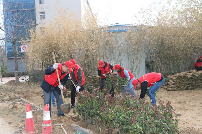 一棵棵树苗,象征着一份份绿色的希望;一滴滴汗水,都代表着志愿者们的爱心。我校志愿者积极参加义务植树和种植花卉活动,为构建和谐校园、建设美丽社区贡献了自己的力量,营造了全民植绿、爱绿的良好氛围。(供稿:韩彦;审稿:武新胜)