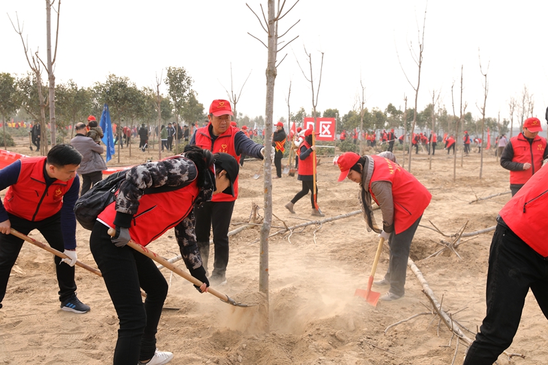 为积极响应党的十九大“开展国土绿化行动”的号召,2月28日上午,我校组织37名教师志愿者赶赴惠济区花园口镇八堡村黄河湿地,参加了由省绿化办、省直绿化办和省直文明办组织的全民义务植树活动。
