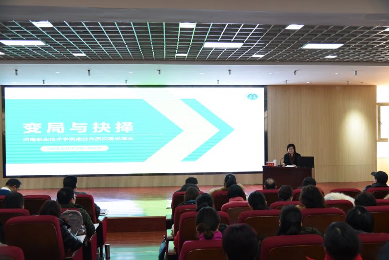会上,李院长详细分析了我院建设优质校面临的机遇和挑战,以及具体目标,重点从“六大措施”推进教育教学质量提升工程;“坚持四抓”推动创新创业教育引领工程;“三个课堂”实施学生人文素养培育工程等三个方面介绍了我院优质校建设的具体措施以及取得的成效,并对新时代下职业教育的发展趋势进行了深入分析。她的讲座站位高,思路清,生动精彩,受到该院教职工的高度评价。 (供稿:姬玉侠 审核:任枫轩)