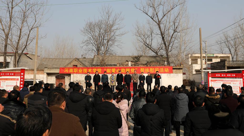寒冬送温暖,浓情感人心。春节临近,带着学校全体师生的重托和对贫困户的牵挂,1月16日上午,校党委书记李四清,副院长田华和王皓带领党政办、宣传部(“帮扶”办)相关负责同志,赴我校结对帮扶县舞阳县,深入章化镇岭张村,开展春节走访慰问活动,送去价值六万元的慰问物资,并向他们致以新春的问候和节日的祝福。舞阳县委常委、副县长占江,章化镇领导、包村干部、驻村书记等陪同走访慰问。