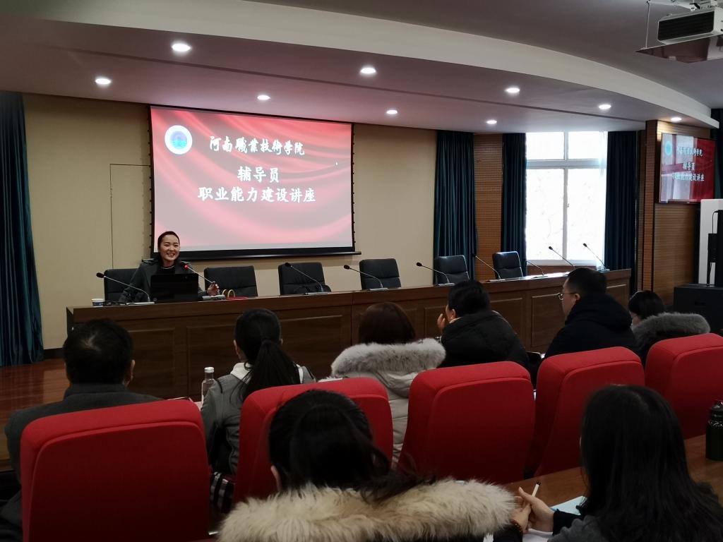 12月28日上午,学工部邀请河南财经政法大学国际教育学院团委副书记、河南省优秀辅导员、第五届河南省高校辅导员年度人物张晓静,来我院作辅导员职业能力建设专题讲座。我校2018年辅导员素质能力大赛入围的10位选手听取了讲座。