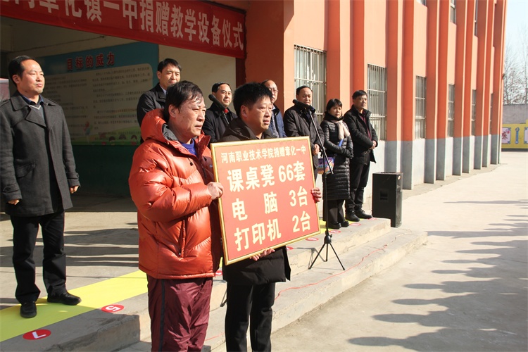 12月12日上午,我校工会主席夏喜利赴舞阳县出席章化镇第一初级中学捐赠仪式,并考察帮扶工作。校工会、“帮扶”办相关同志陪同参加。本次学校共捐赠课桌椅66套、计算机3台、打印机2台。舞阳县政府副县长宋春华,县教育科技体育局、章化镇和章化镇第一初级中学相关领导及部分师生600余人参加了捐赠仪式。