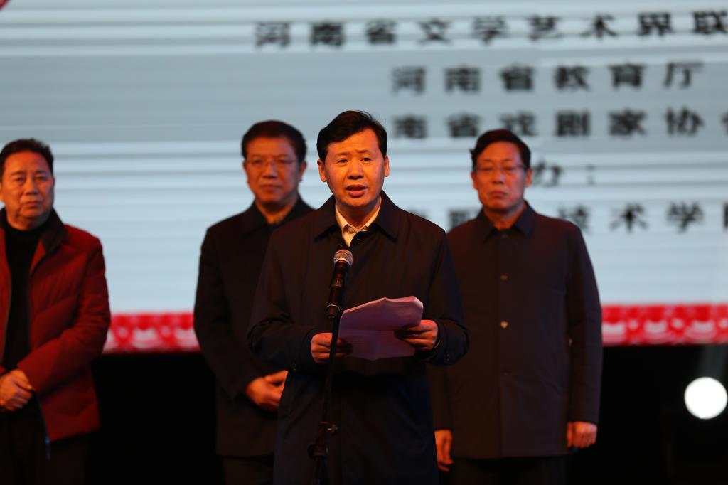 12月3日下午,由省文联、省教育厅、省戏剧家协会联合主办,我校承办的“第二届黄河戏剧奖·校园戏剧奖”大赛在学校音乐厅隆重开幕。中共河南省委宣传部副巡视员赵钢,河南省教育厅副巡视员李金川,中国戏剧家协会副主席、河南省戏剧家协会主席、河南豫剧院院长李树建,河南省戏剧家协会副主席、秘书长陈涌泉,学校党委书记李四清,院长李桂贞等领导嘉宾出席开幕式。