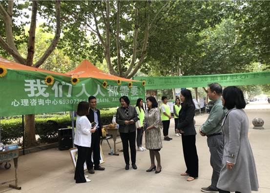 根据河南省委高校工委、省教育厅安排部署,我校思想政治理论教学部联合校团委于10月15日启动了“第十二届大学生心理健康教育宣传周”系列活动。副院长邵芙蓉在思政部相关负责人的陪同下实地察看了活动现场,并就心理健康普查、心理咨询、心理健康教育宣传以及活动安全等问题与现场工作人员进行了亲切交谈。