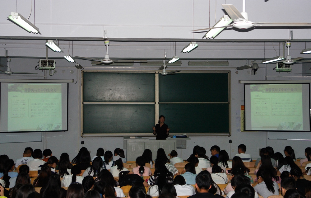 杨华老师从文学的真与本原生活的关系、文学善和美的内涵、感受文学的真善美和真善美决定文学的生命力等四个方面作了具体阐述。她通过分析《红楼梦》、《长恨歌》等文学作品,介绍了文学创造关于真善美的价值追求,强调在体验真善美的同时,感受作品带给人们至真至善至美的唯美境界。她讲到,文学创造追求的是以真善美为内涵的审美价值标准,真善美是文学创造活动中“三位一体”的价值结构,三者相互融通,“真”是基本,“善”是核心,“美”是手段,三者相辅相成,是文学艺术产生强大生命力的根本原因。