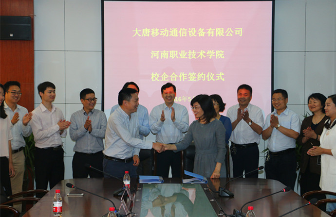 5月6日下午,我院与大唐移动通信设备有限公司签订校企共建“河南职业技术学院大唐移动通信学院分院”。大唐移动通信设备有限公司副总经理张敏等,党委书记李四清、院长李桂贞和副院长肖珑出席签约仪式。合作办学处和电气工程系相关领导参加了签约仪式。签约仪式由副院长肖珑主持。