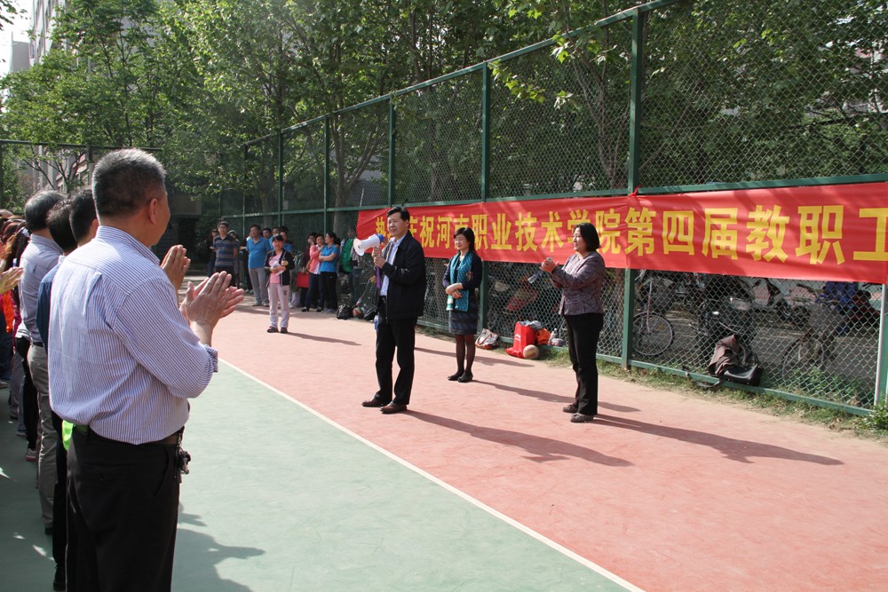 4月21日下,我院第四届教职工排球赛在排球场如期举行。院党委书记李四清、院长李桂贞和工会主席邵芙蓉出席开赛仪式,党政办主任王皓和人事处处长李玉峰陪同参加。仪式由工会主席邵芙蓉主持。