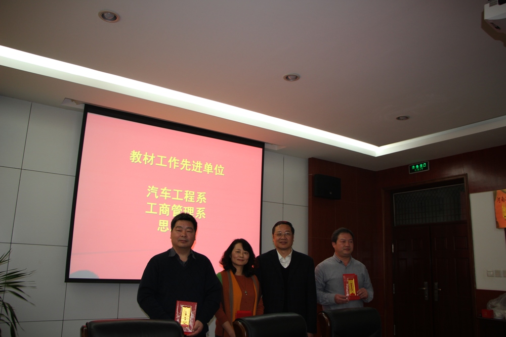 彭志宏副院长进行了总结发言,他指出,要加强对教材工作的监督管理,要把教材选用纳入重点专业建设、教学质量管理等指标体系,既要多选用国家级、省级规划教材和统编教材,也要鼓励适用性强的校本教材和立体化教材的开发。他鼓励学院广大教师要与行业、企业和出版社加强合作,实现我院教材建设工作的新跨越。他还为汽车工程系、工商管理系和思想政治理论教学部等三个部门,颁发了2015年度教材工作先进单位荣誉证书和奖金。