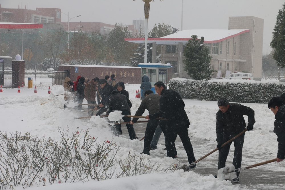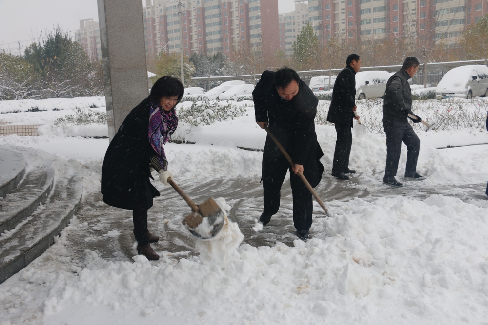 11月24日一上班,党政办和后勤管理处牵头,院属其他单位迅速组织广大教职工和学生志愿者义务清扫校园内主干道上的积雪。清扫积雪现场,学院领导、教职员工和学生志愿者一起,冒着纷飞的大雪和严寒,拿着铁锨、扫帚清扫道路积雪。经过三个多小时的紧张劳动,师生员工在校园内清理了一条通道,确保了师生通行安全,彰显了志愿服务精神。