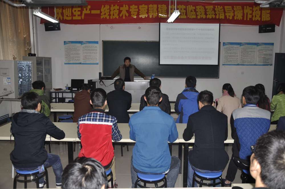 11月7日上午,电气工程系邀请恒天重工有限公司高级技师姚宝玉和河南轻工业职业技术学院高级工程师郭建庄,为该系师生作技术实践专题讲座。参与师生现场接受技术专家指导,收到了良好的效果。