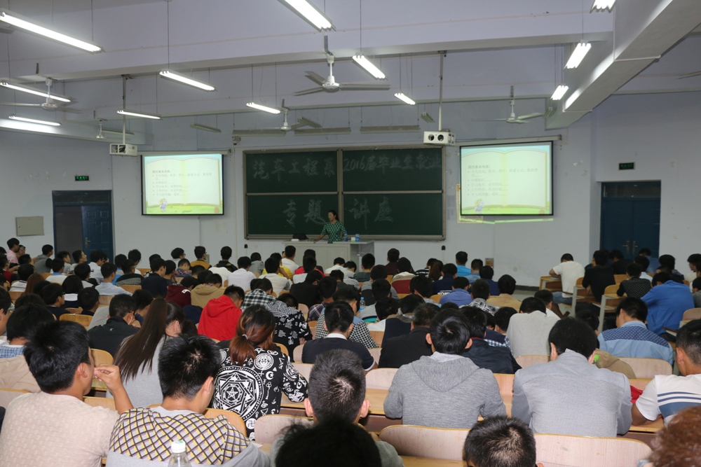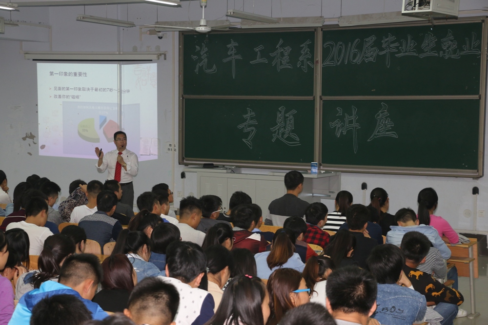 10月15日晚,汽车工程系王爱巧和王德龙两位老师,从应聘礼仪技巧和简历制作两方面分别为该系700余名毕业生作了就业专题指导。