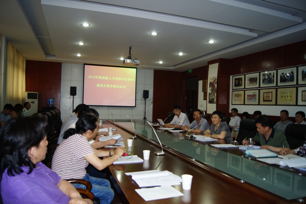 5月29日上午,我院召开了2015年高技能人才培养示范基地建设方案专家论证会。会议邀请了11位来自企事业单位的专家学者担任论证专家,对我院高技能人才培养示范基地智能工厂工作室等6个拟建设项目实施方案及项目预算进行论证。副院长肖珑、教务处处长周宗杰、公共实训基地办公室主任张凯、财务处副处长蒋倩、校产管理处副处长郭京和各建设单位负责人参加了论证会。