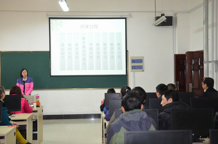 本次说课比赛是该系本学期开展教师教学水平评比工作的一部分。参赛教师选取规定的教学内容,在十分钟内分别从教学目标、教材分析、学情分析、教学重难点、教学策略选择、教学过程、板书等环节进行现场展示和阐述。评委现场对他们的说课进行打分和评判。