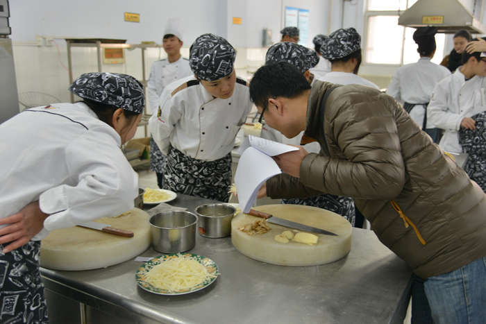 12月18日下午,烹饪食品系第三届基本功专业技能比赛在系实训中心正式拉开帷幕,共有100余名学生参加了中式刀工、西式刀工、翻锅、拉面等四个项目的比赛。