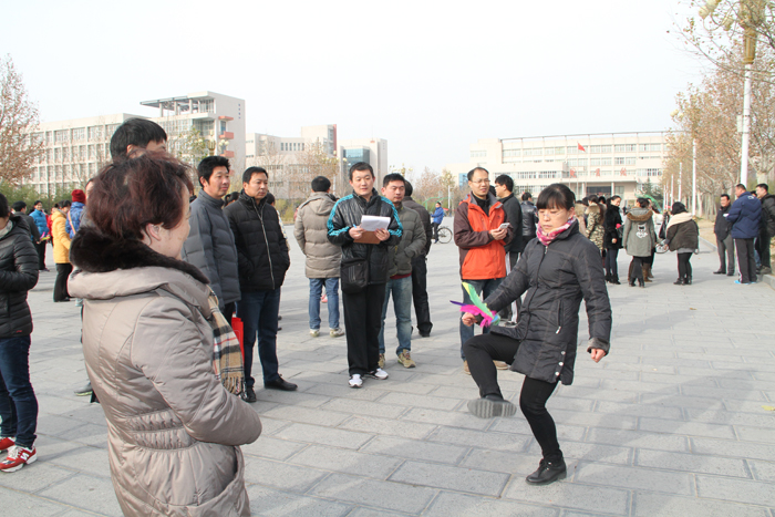 为活跃教职工业余文化生活,提高教职工锻炼身体意识,12月11日下午,虽是大雪时节,依然是阳光明媚,院工会在图书馆广场前举办了2014年教职工踢毽球比赛,来自17个分工会的700多名教职工参加了比赛。