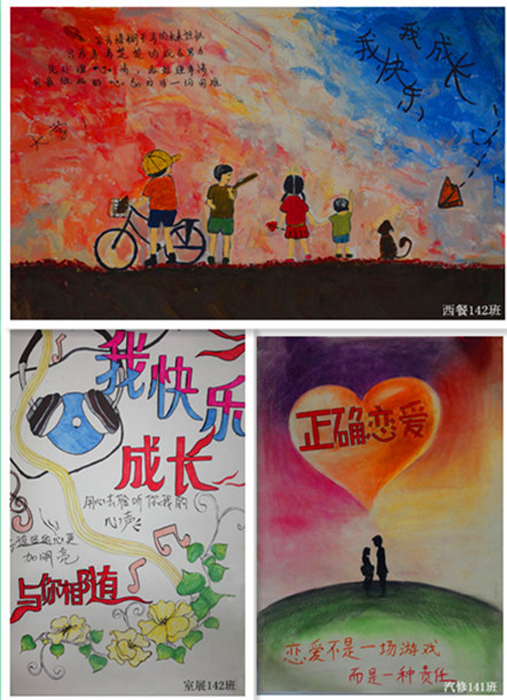 本次活动以“我成长•我快乐”为主题。工商管理系企管141班的《不必向左,不必向右》和旅游管理系酒管143班的《心若向阳,何惧悲伤》荣获一等奖,汽车工程系汽修141班的《正确恋爱》、环境艺术工程系室展142班的《与你相随》和烹饪食品系西餐142班的《我成长,我快乐》荣获二等奖,机电工程系计辅142班的《你我同行,拥抱幸福》、音乐学院歌剧141班的《善待生命》、信息工程系多媒体141班的《我成长,我快乐》、电气工程系电气142班的《心理社》荣获三等奖。环境艺术工程系、烹饪食品系、音乐学院荣获优秀组织奖。