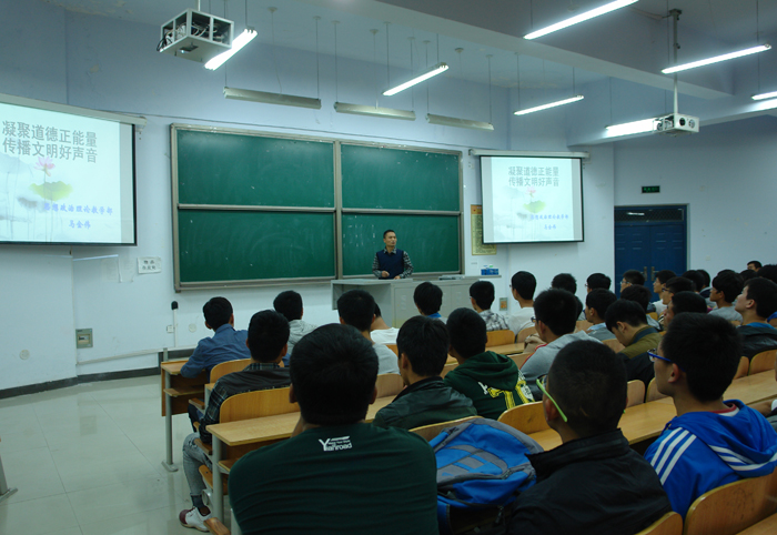马金伟老师首次为我院学生作专题讲座。他以“凝聚道德正能量,传播文明好声音”为题,结合校园十大不文明现象调查结果,与大家探讨了“道德究竟是什么”和“人类为什么需要道德”两个话题。他图文并茂地讲解了对待“利”与“义”的关系、对待人际关系及个人修养等三个方面的中国传统道德主要内容,并根据网络调查结果和实际案例,介绍了当代中国道德建设现状。他讲到,在社会公共生活中倡导助人为乐精神,是社会主义道德核心和原则在公共生活领域的体现,也是社会主义人道主义的基本要求,作为一名中国公民,应恪守爱国守法、明礼诚信、团结友善、勤俭自强、敬业奉献的基本道德规范。他希望大家提高自身道德修养,做一个善良高尚之人,用榜样的力量鼓舞自己、带动他人,为社会道德文明建设贡献一己之力。