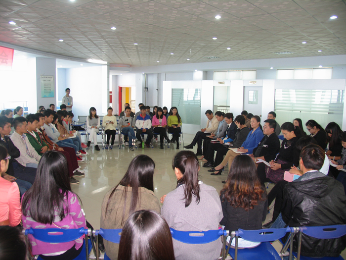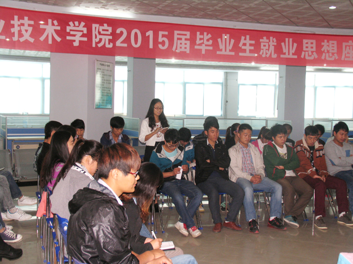 10月16日下午,2015届毕业生就业思想座谈会在学院就业服务大厅召开。招生就业处就业指导教师及各系(院)就业专干、2015届毕业生代表共80余人参加。