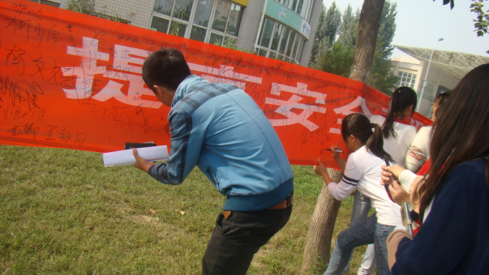 为创建安全、和谐、文明校园,10月16日下午,工商管理系组织1000余名学生在校园内举行签名活动,标志着该系“安全月”宣传教育活动全面启动。