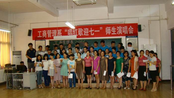 为庆祝中国共产党成立93周年,6月12日下午,工商管理系党总支部在商务礼仪实训室隆重举办了“唱红歌 迎七一”师生演唱会,共有100余名教职工和学生党员观看了演唱会。