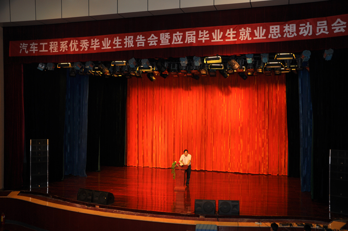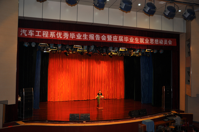 5月20日下午,汽车工程系2014年优秀毕业生报告会和毕业生思想动员会在学院音乐厅举行。副院长占江出席会议并做就业思想动员讲话。招生就业处处长张琳,学生处负责人鲁冬和团委负责人朱永宽,以及各系党总支书记、副书记、优秀毕业生代表和家长代表应邀出席。系党政领导、部分教师、辅导员及2012级学生参加了会议。会议由系党总支副书记李娟主持。