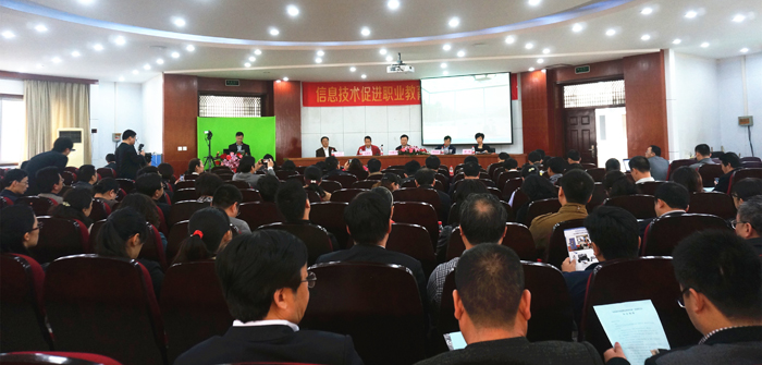 本次会议由省高等职业教育研究会主办、我院承办、河南省精华科技有限公司协办。会上,孔繁士处长就信息技术在高等职业教育发展中的重要作用做专题报告。来自省高等职业教育研究会、郑州轻工业学院、周口师范学院、郑州铁路职业技术学院、河南省精华科技有限公司及我院的专家和老师分别从职业教育信息化的政策、理论、应用及实现手段等方面进行了专题演讲,系统阐述了信息技术对于促进职业教育发展的重要作用。同时,组织单位利用微信公众平台、虚拟演播室等手段,向参会人员展示了信息化的直接体验。