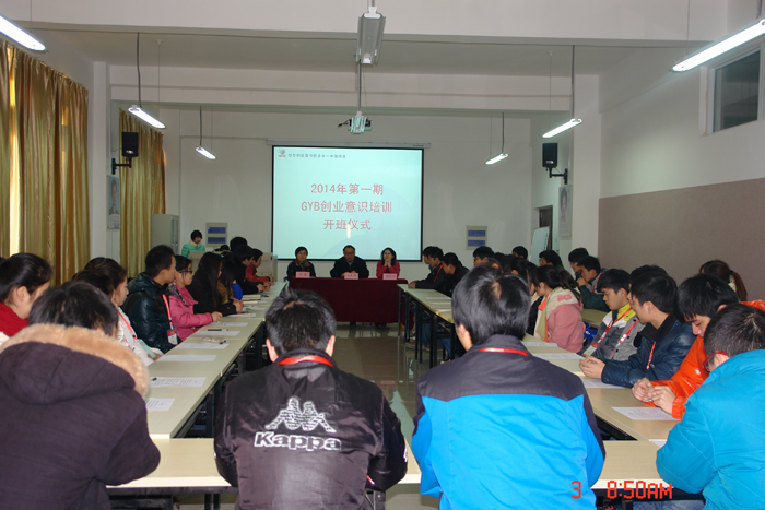 1月3日上午,我院举行2014年第一期GYB创业意识培训开班仪式。院长王爱群、副院长肖珑出席并讲话。继续教育学院领导、全体教师及SIYB培训班教师和学生代表共60余人参加。