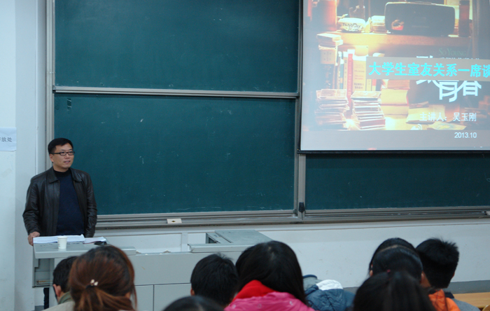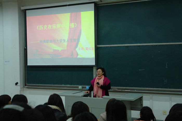 讲座中,雷红薇老师从音乐对大学生成长的影响和中国经典歌曲在历史发展中的传播历程这两个方面,向大家介绍了革命战争、社会主义建设和改革开放30年等三个不同时期的经典歌曲,详细讲解了其产生、发展和繁荣的时代背景。她鼓励同学们多听经典歌曲,用音乐陶冶情操,提高精神素质和文化涵养,感受经典歌曲所具有的文化内涵和审美价值。吴玉刚老师结合近几年大学校园中发生的案例,介绍了习惯差异型、竞争对手型、自我中心型等可能会存在的六种类型室友,并根据不同的性格特征,分析了个体与环境的差异、“共同利益” 的激烈竞争、人格障碍的存在和人文教育(特别是情商教育)的缺失等四种造成室友矛盾的原因。他提醒大家,要学会赞美和包容,坚持主动、互惠、平等的交往原则,妥善化解矛盾,以真诚善待室友,友谊地久天长。