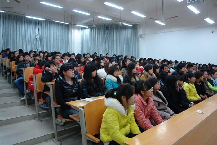 当晚同一时间,肖珑副院长为烹饪食品系250名师生作了“科技知识溢校园”专题讲座。