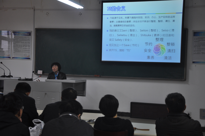 系副主任李玉芝作了关于实训室7S管理的讲座。她讲到,“7S”(整理、整顿、清扫、清洁、素养、安全、节约) 是让现代的企业元素融进学校实训管理中来,以职业标准打造学生行为养成,以职业意识强化教师的管理理念,是国内外企业管理最重要的“法宝”之一。此次宣讲会的举行将有效推动该系实训室管理和实训教学管理水平,提高效率,保证品质,是对我院实训基地建设工作的不断探索和创新实践。