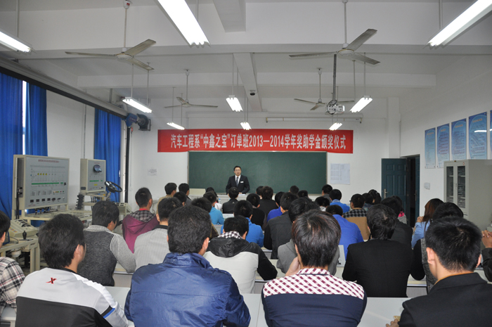 10月24日下午,汽车工程系“中鑫之宝”订单班2013-2014学年学生奖助金颁奖仪式在该系实训中心209举行。该系领导和中鑫之宝常务副总经理杨永刚代表企业共同出席颁奖典礼并为获奖学生颁奖。