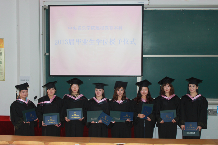 10月17日下午,音乐学院举行“中央音乐学院远程本科教育河南职业技术学院学习中心”2013届毕业生毕业典礼暨学位授予仪式。院长王爱群出席并讲话,音乐学院有关领导和毕业生参加。