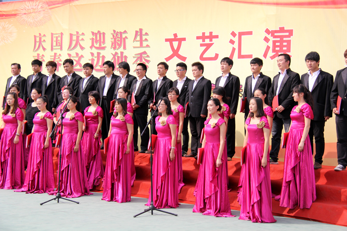 9月26日下午,院团委在元亨大道国旗台前成功举办了“庆国庆 迎新生”文艺汇演。院长王爱群,副院长彭志宏、占江、肖珑,院工会主席邵芙蓉出席活动现场,与六千多名2013级新生一同观看了这场精彩纷呈的演出。