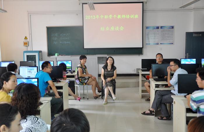 7月18日上午,2013年河南省中职骨干教师培训班结业座谈会在我院机电实训楼409教室和210教室分组举行。继续教育学院、机电工程系、电气工程系等有关单位领导和工作人员及参加培训的骨干教师共40余人参加座谈会。