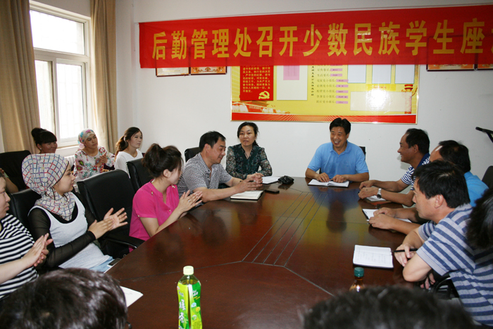 6月20日下午,后勤管理处召开新疆少数民族学生座谈会,听取同学们对食堂餐饮、公寓住宿、洗浴等后勤服务方面的意见和建议。该处领导、各服务中心主任及相关系部辅导员老师和少数民族学生代表共计30余人参加座谈。