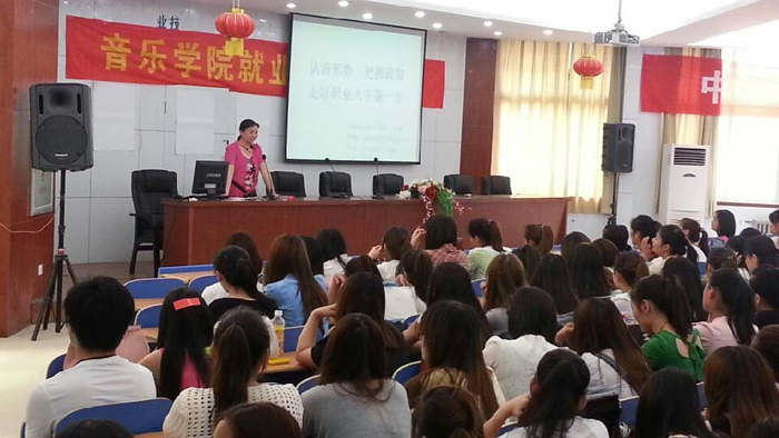 为进一步加强对音乐学院学生的就业指导, 5月30日下午,音乐学院邀请招生就业处处长张琳为该院300多名在校学生作了就业指导报告会。音乐学院领导及有关老师参加报告会。