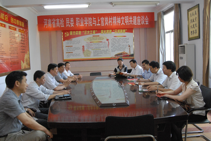 在帮扶对接座谈会上,该村党总支部书记刘正双介绍了上官岗村的基本情况和长期发展规划,并介绍了中心社区、现代农业园区、商贸物流园区的建设和开展股份制合作等情况。帮扶组长单位省检察院机关党委专职副书记杜维国代表三家单位发言。他表示,三家帮扶单位将按照省直文明办的安排和要求,确定帮扶工作任务和目标,重点从组织教育技能培训、整治村容环境、帮建文化设施、开展文体活动和推进乡风文明等方面进行帮扶,并结合彼此双方的实际情况和各自优势,具体制定三年帮扶工作方案,务实求效,落实责任,在该村现有物质文明建设的基础上,进一步提高其精神文明建设水平,把该村建成全省乃至全国农村精神文明建设示范村,实现帮扶单位和对象共建共赢的目的。随后,信阳市、光山县宣传部、文明办的负责人也相继作了发言。