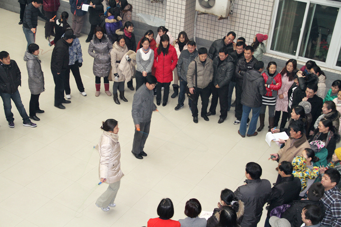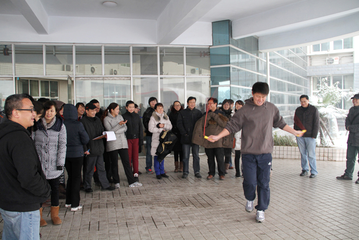 为丰富我院教职工的文化生活,锻炼教职工体质,12月13日中午,伴随着郑州的第一场雪,由院工会组织的2012年冬季教职工跳绳比赛在学院行政楼如期举行,共有来自17个分工会的607名教职工参赛。